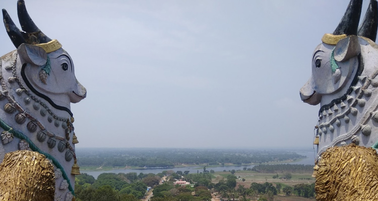 1. Savouring the views – In Mudukuthore Mallikarjuna Temple, you can worship the Shivalinga, as well as Sri Bhramarambhika Devi. The steps and covered walkway also offer a panoramic view of the greenery and the river flowing past.